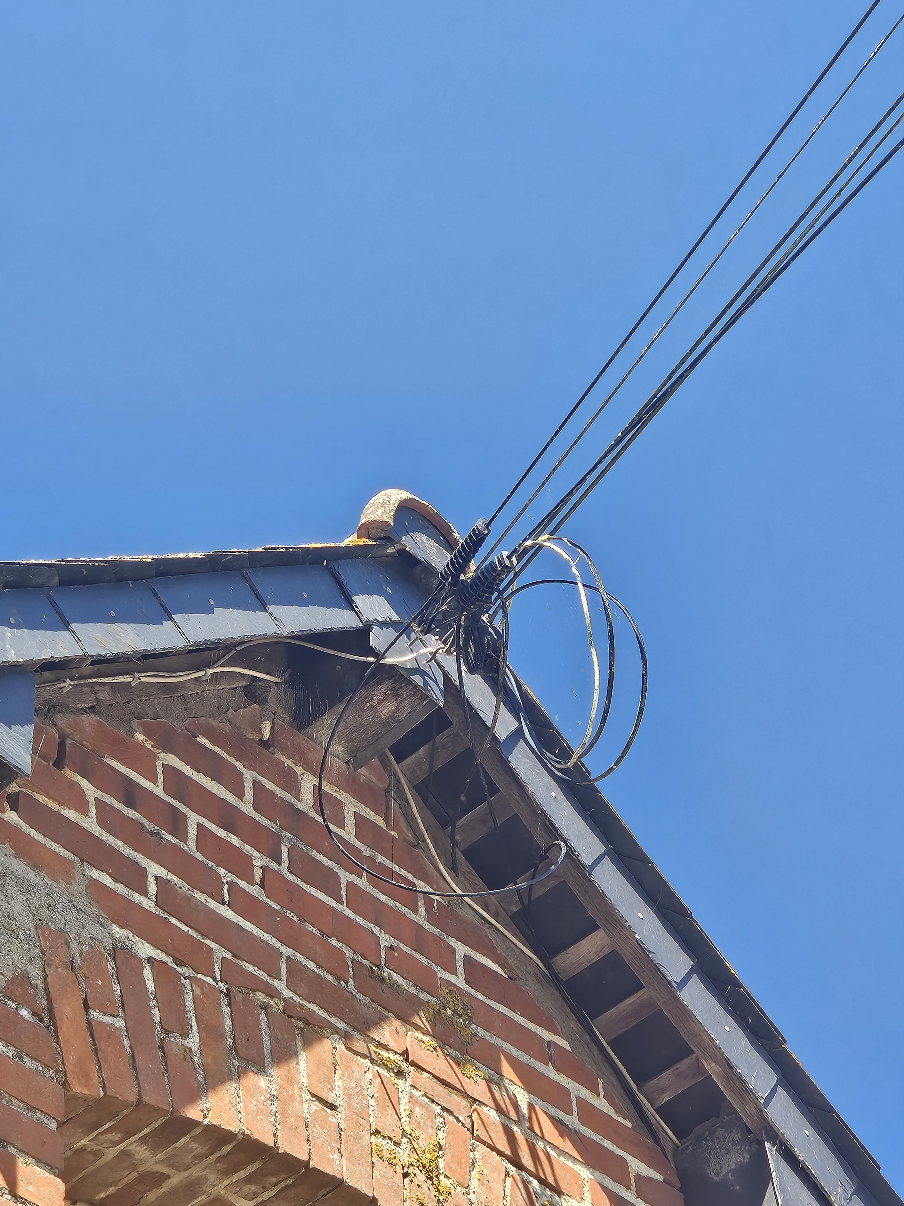 De plus, le câble qui relie le poteau extérieur à mon appartement n'est pas assez tendu et repose sur un toit en tôle ondulée. Les jours de vent, le câble se balance et heurte la tôle. J'avais notifié SFR dès le début, mais jamais aucun technicien n'est venu régler ce problème qui est toujours présent.