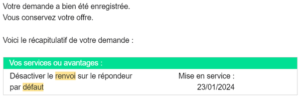 N'hésitez pas à nous confirmer ici que vous avez réussi à désactiver les renvois et nous préciser si vous avez du demander la souscription de l'option "Désactiver le renvoi sur le répondeur par défaut" au service client.