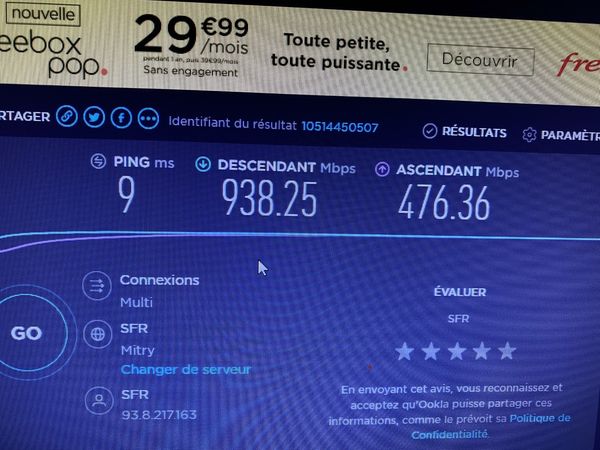 Vous trouverez un screenshot du test SFR ci-dessous :